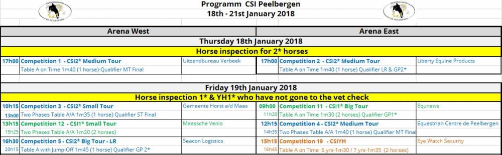 New Program CSI de Peelbergen New Year Tour 18 January 18 Januar 2018 Unkategorisiert Today Horse inspection between 13h30 – 15h30