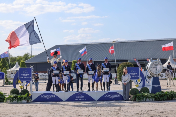 Hoog vliegen met Frankrijk: Het Franse volkslied weerklinkt als Team Frankrijk de Longines EEF Nations Cup Peelbergen wint.