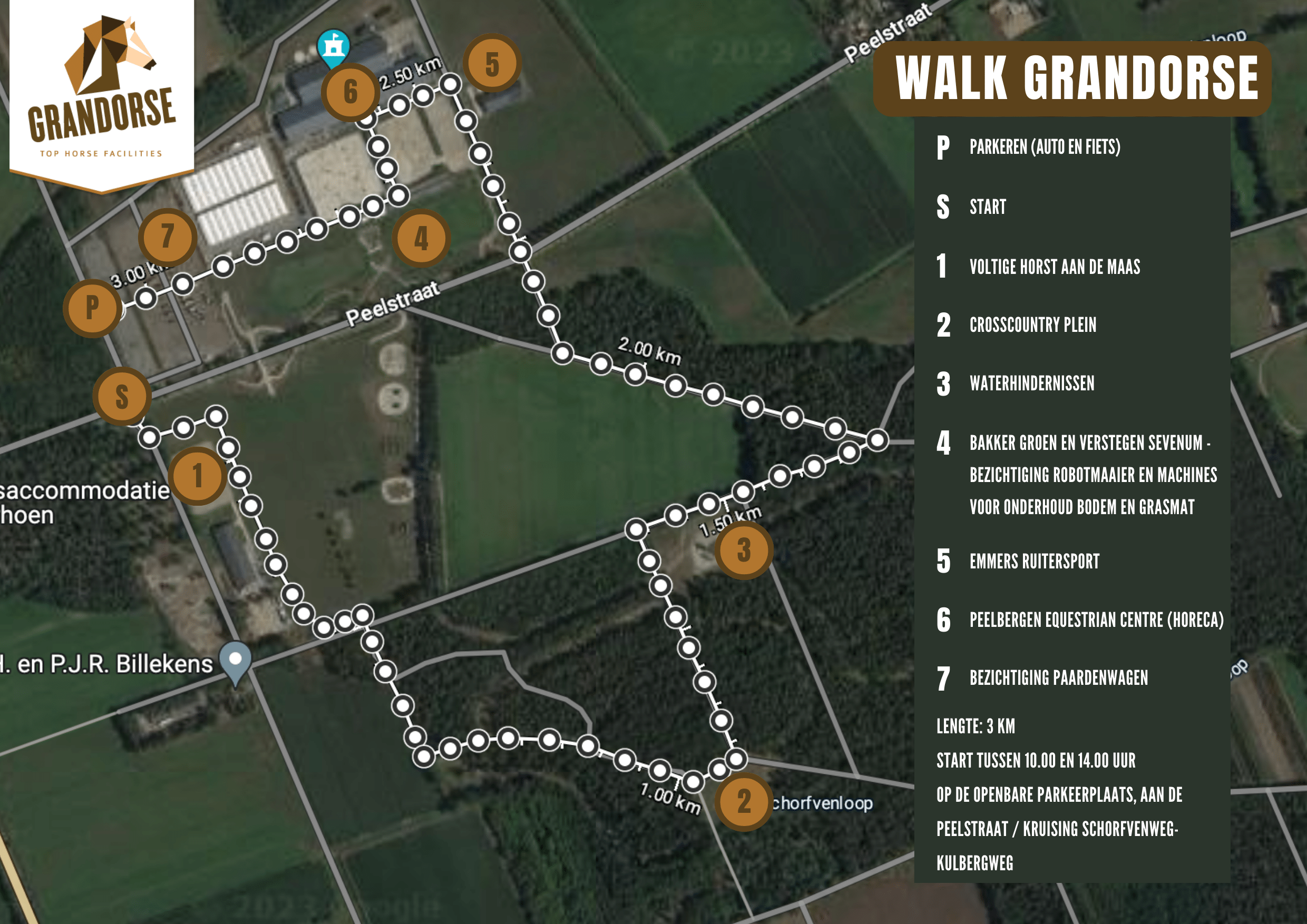 To participate in the Walk Grandorse, simply fill out the registration form here and join us at the designated starting point: the parking lot at the corner of Peelstraat-Schorfvenweg-Kulbergweg in Kronenberg. Upon arrival, make your way to the party tent, where you’ll receive a route map with essential information and your voucher for a free beverage at Peelbergen Equestrian Centre.
